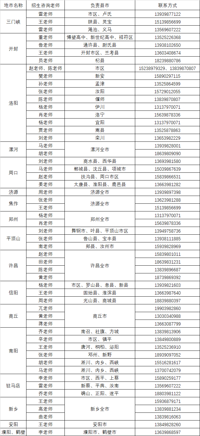 世界杯体育官方网站2022年各地市招生咨询老师联系方式